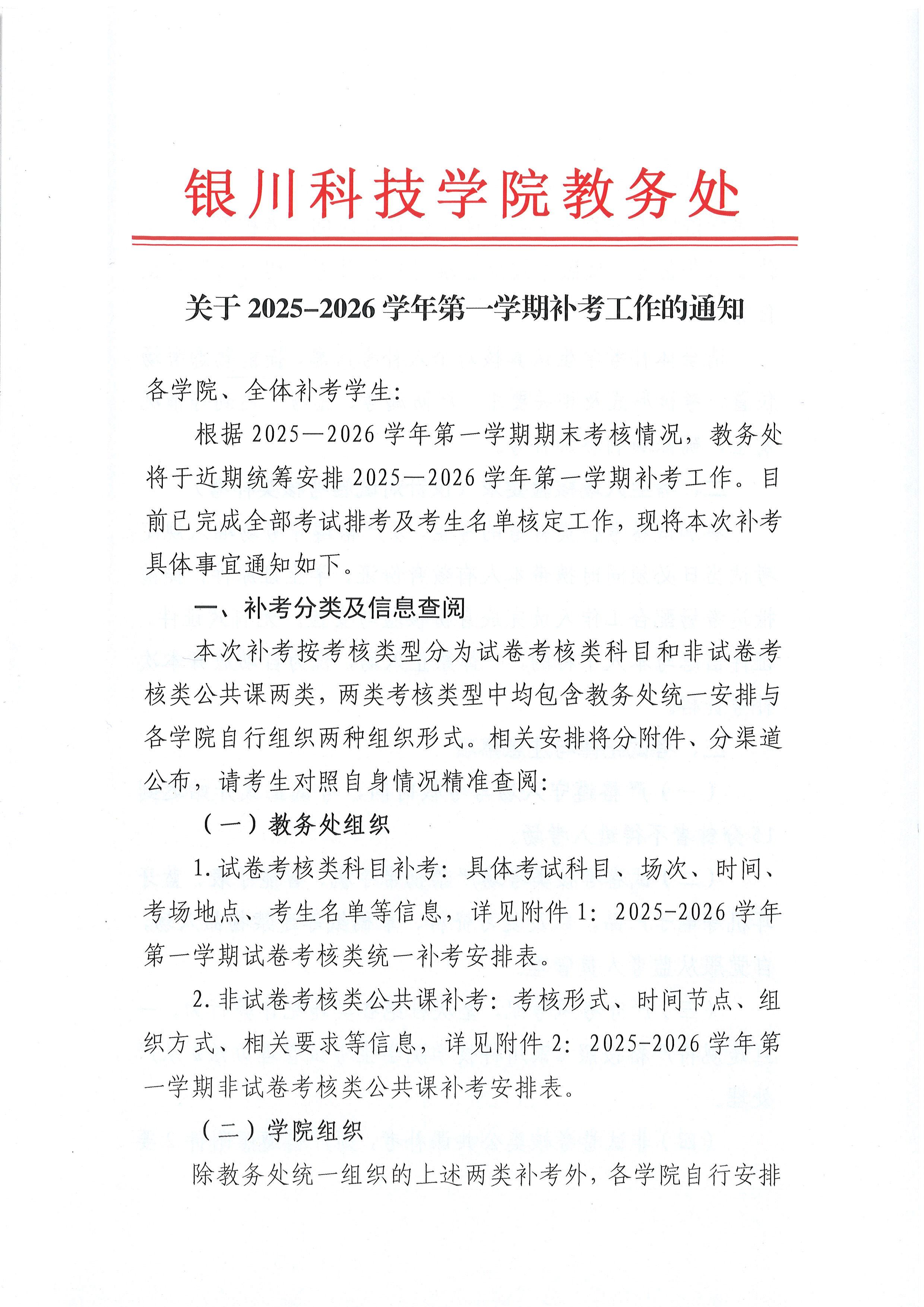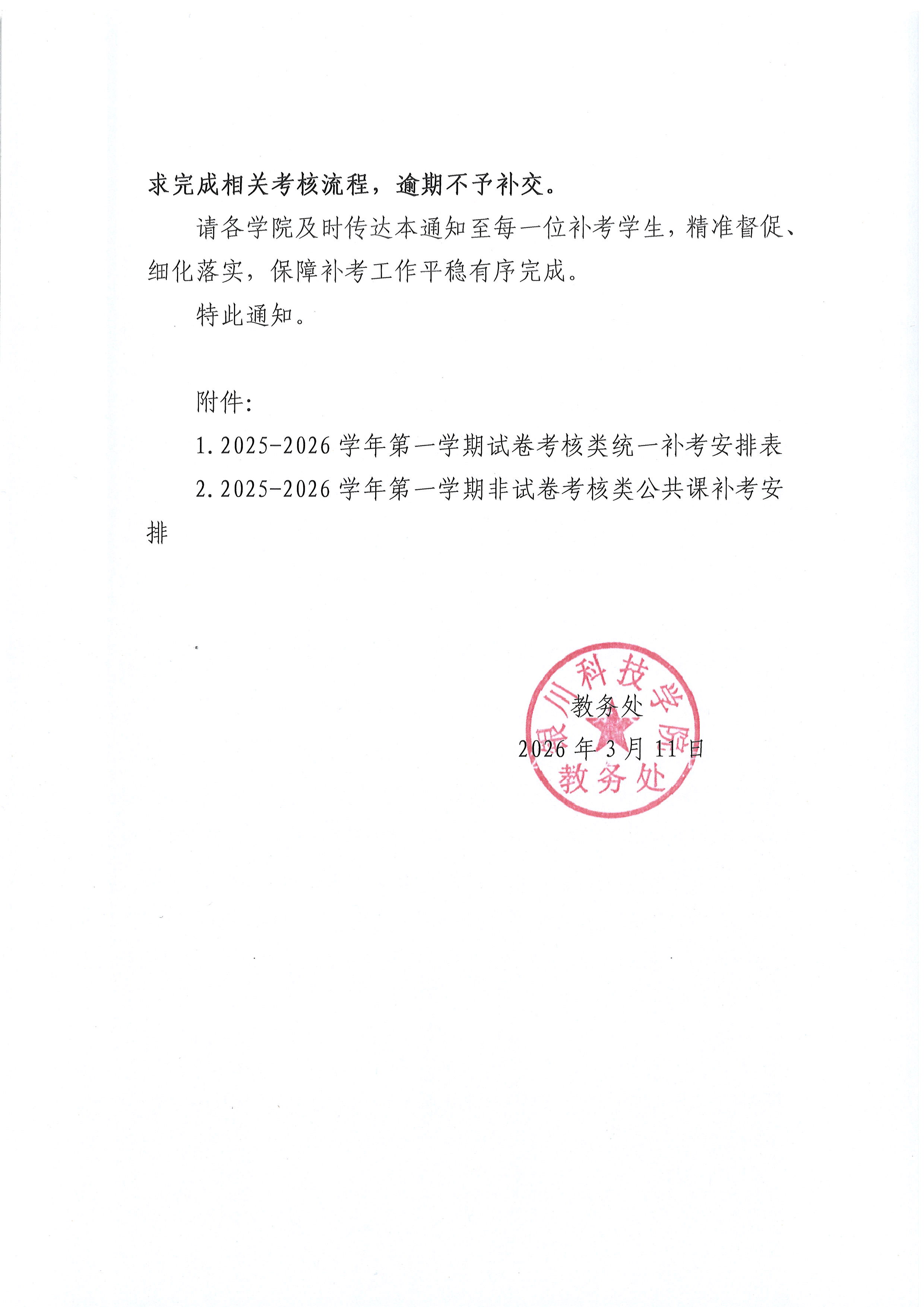 附件1:2025-2026学年第一学期试卷考核类统一补考安排表